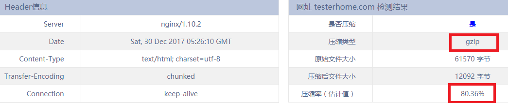 协议 通常是请求某个业务数据,返回数据类型常见为 JSON, XML 等文本格式,最有效的方法就是 gzip 压缩 http 请求了,压缩率一般高达70%以上。安利一个检测是否启用 gzip 的工具,以 testerhome 首页为例,压缩率达到了80%。