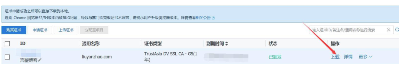 点击下载到桌面,然后解压,里面应该有几个文件夹,即不同webserver对应的证书